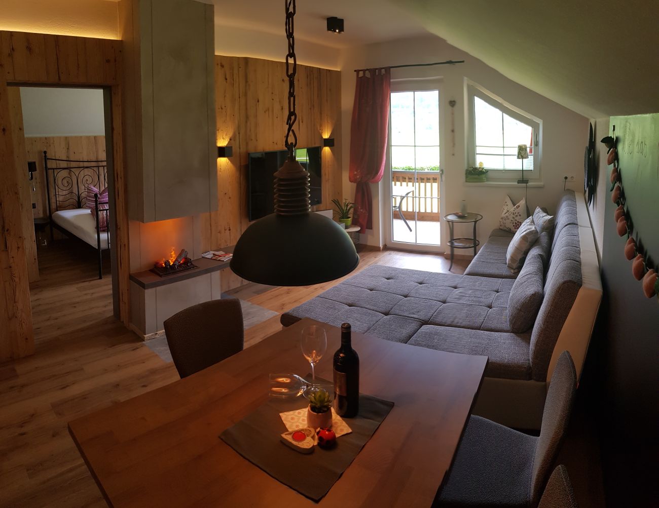 Das Appartement befindet sich im Dachgeschoss und hat eine Grundfläche von 75m² und ist für maximal 5 Personen. Zum Appartement gehört ebenfalls eine Infrarot Saunakabine.